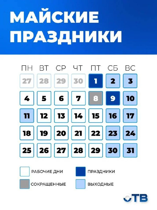 В этом году россиян ждут самые короткие майские праздники за 8 лет. В этом году дополнительные переносы выходных с новогодних каникул не производились, поэтому россияне будут отдыхать два раза по три дня.