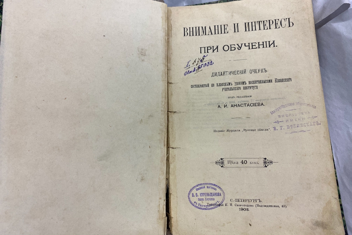 Издание «Внимание и интерес при обучении» находилось в частных руках более века. В библиотеке обнаружили, что книга была взята на абонемент в июле 1919 года и должна была быть возвращена через месяц. О причинах такого долгого отсутствия книги в фонде можно только гадать, поскольку запись о сроке возврата не сохранилась. Однако сохранилась старинная печать библиотеки. Теперь найденное издание пополнит коллекцию отдела редких книг библиотеки.